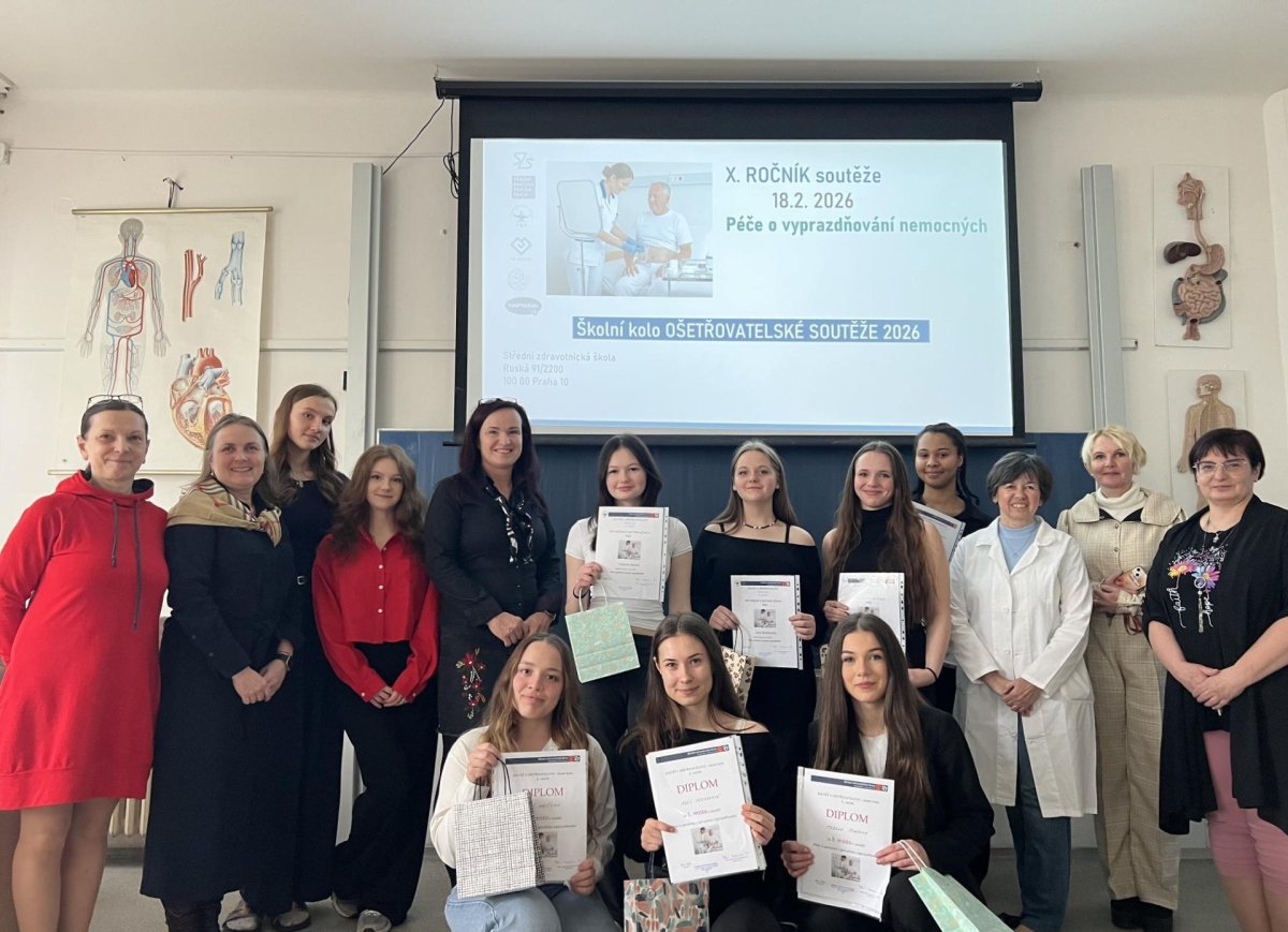 Ve středu 18. února 2026 proběhl již X. ročník ošetřovatelské soutěže na téma Péče o nemocné s poruchou vyprazdňování. Z každé třídy oboru Praktická sestra (2.–4. ročník) byli vybráni zástupci, kteří poměřili své teoretické znalosti i praktické dovednosti.